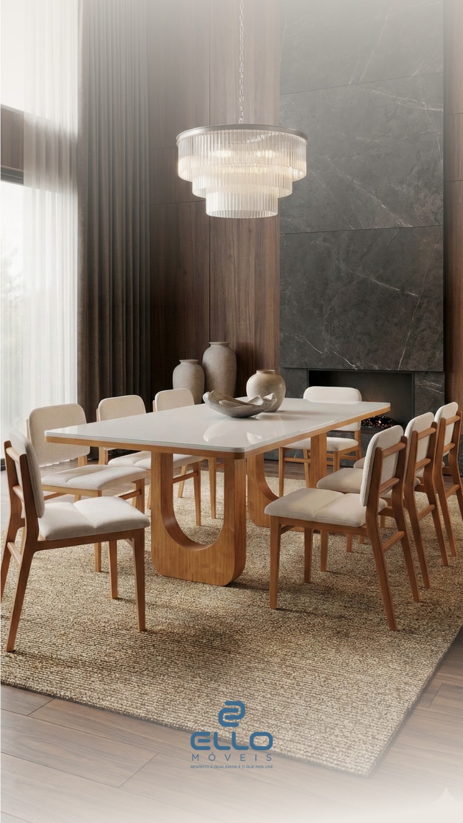 Quando pensamos em um lugar para reunir com quem amamos em um café da tarde, almoço de domingo, aniversários, pensamos em uma sala de jantar. É lá que são criados e relembrados momentos únicos e especiais. A coleção Ello 2025 foi desenvolvida pensando no seu bem-estar e no de seus familiares, trazendo design, conforto, durabilidade e a qualidade Ello Móveis que você já conhece. Nossas salas de jantar são ideais para o seu estilo de vida, seja para um ambiente interno ou para área gourmet.